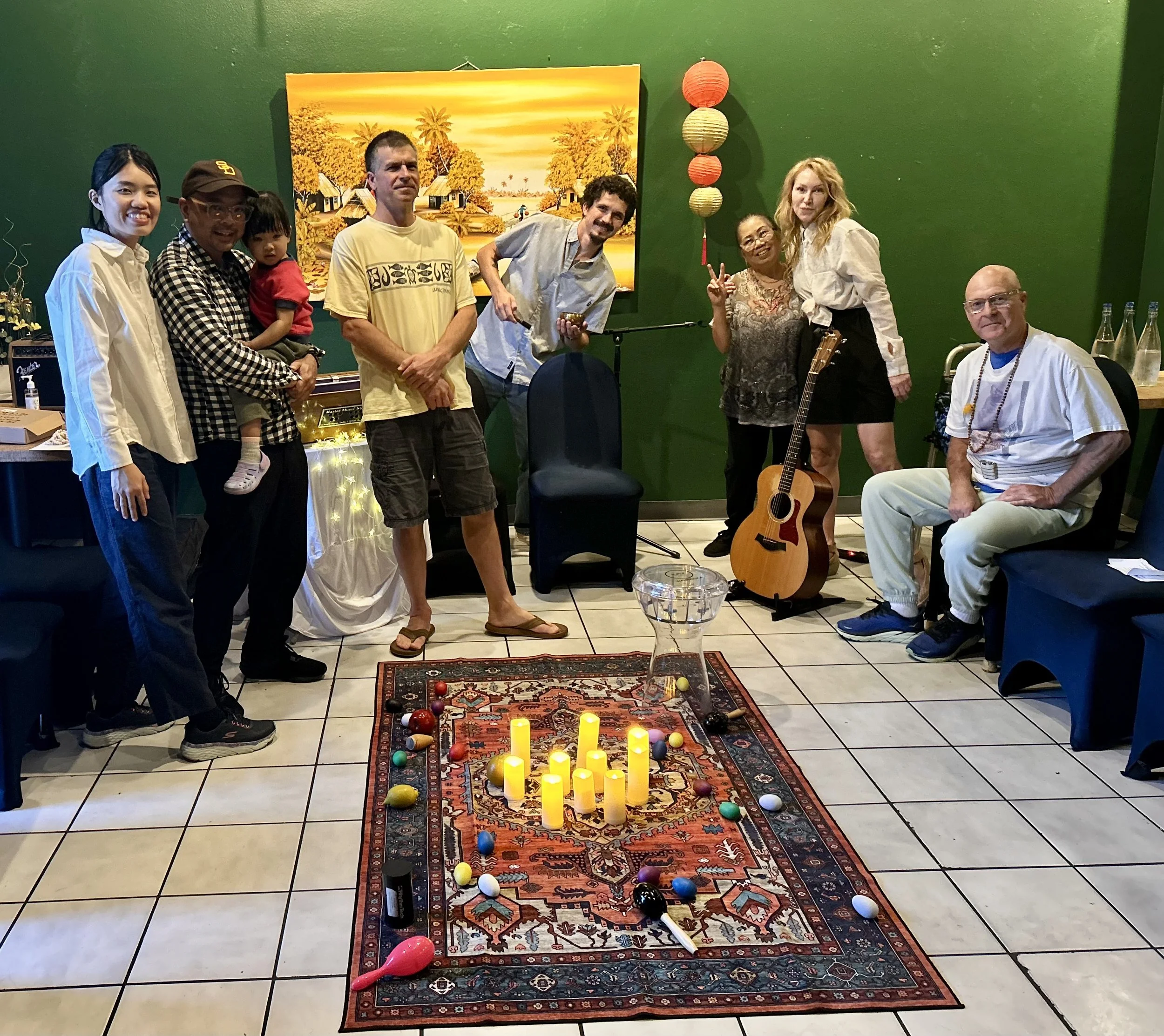 After the chanting, you’re warmly invited to stay and enjoy delicious plant-based cuisine in the dining area while connecting with others in a welcoming and joyful community atmosphere.