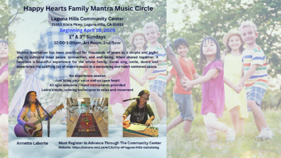 Join us for a joyful Family Mantra Music Circle where kids, parents, grandparents, and friends can come together to sing, clap, move, and chant simple uplifting mantras.